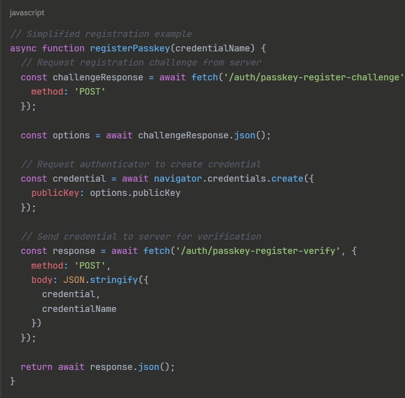 Verify Origins Properly: The origin validation is critical for phishing resistance. Ensure your implementation correctly verifies that the origin used during registration matches the current origin. Browsers handle this, but verify your library implements it correctly.